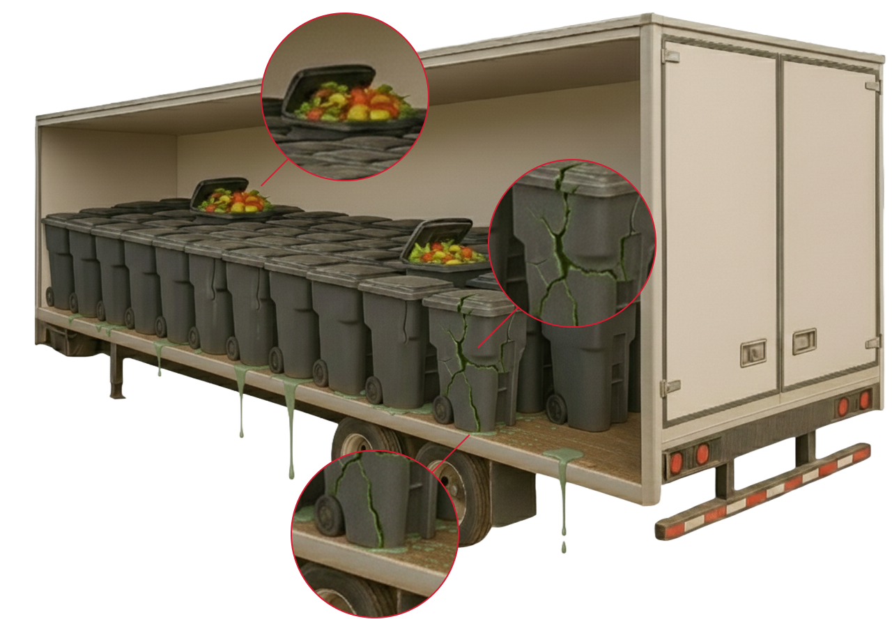 GOBox was shaped by real-world experience from time spent with customers, operators, and crews who deal with food waste every day. Traditional totes weren’t cutting it. They leak, smell, waste space, and are hard to move. We looked outside the industry and took cues from fisheries, where heavy, messy materials demand double-walled, insulated, leak- and odour-proof containment.